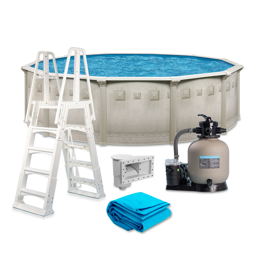 Soak your cares away all summer long with this incredibly affordable and durable above-ground pool package.