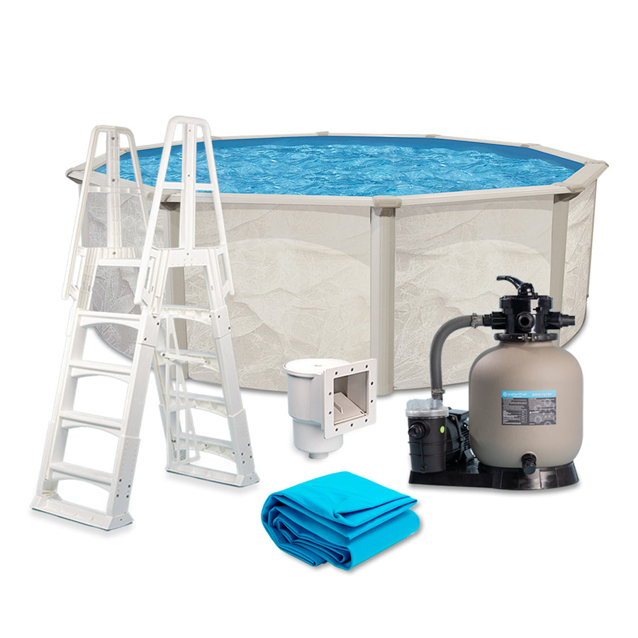 Soak your cares away all summer long with this incredibly affordable and durable above-ground pool package.